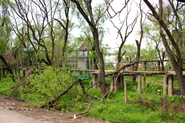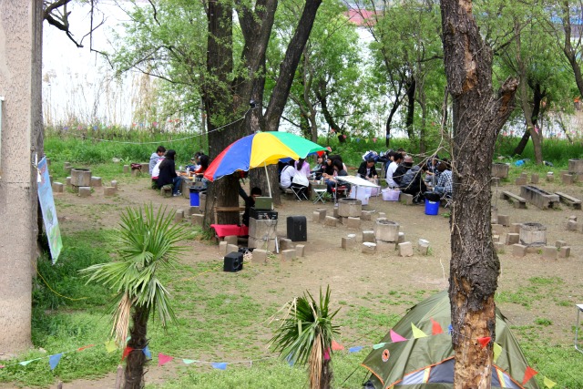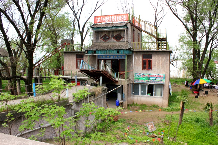 I came across this v. cool campsite when I was biking on the Yangtze River island. It is a tight spot with rows of fire pits and benches lined up next to each other, a small space for a tent beside each and no back yard — dare I say, a little socialist in feel? The entrance to the clubhouse had a drawbridge, as did the obstacle course next to it. And believe me, this obstacle course is not for the faint of heart: